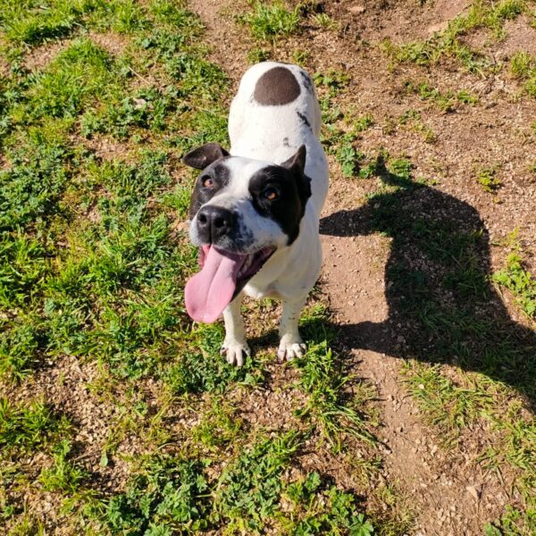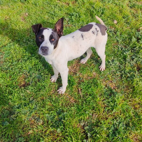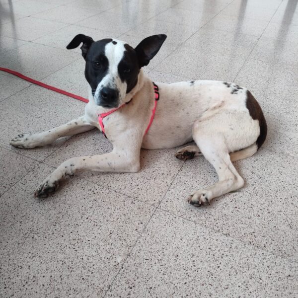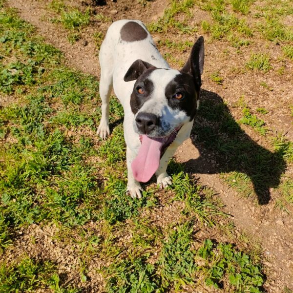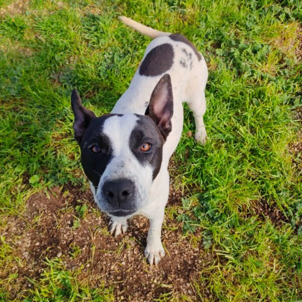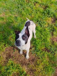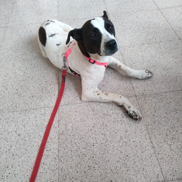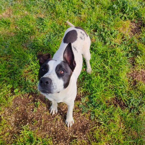 Hello everyone! Let me introduce myself: my name is Alice, I’m a gorgeous young Amstaff/Pointer mix (born around 29 February 2024), and I weigh 22 kg (medium size).