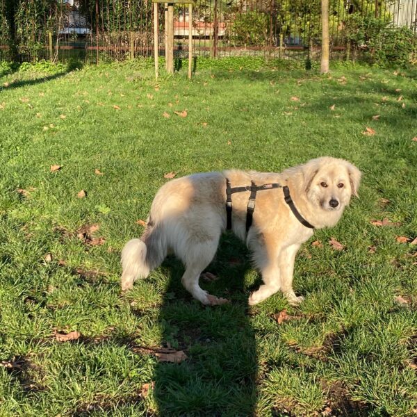Hello everyone! Let me introduce myself: my name is Lice, I was born around July 2024 and I’m a large Maremmano-type dog.